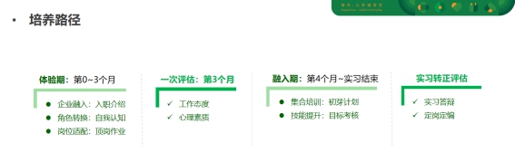 “初芽计划”是新希望服务的校园招聘人才储备项目之一,招聘大专及以上院校全日制在读学生入司实习,通过一系列学习和实践工作帮助同学们建立对物业行业的基本认识,深入了解新希望服务的工作文化与氛围。实习期考核通过将直接转为正式员工,表现优秀者有机会成为集团管培生,通过2-3年的时间培养,成长为专业板块负责人和部门负责人。